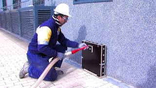 Excelente isolamento térmico e acústico para a reabilitação de fachadas de dupla folha de tijolo cerâmico com uma câmara sem isolamento mediante insuflação através de perfurações que mantêm as fachadas intactas.